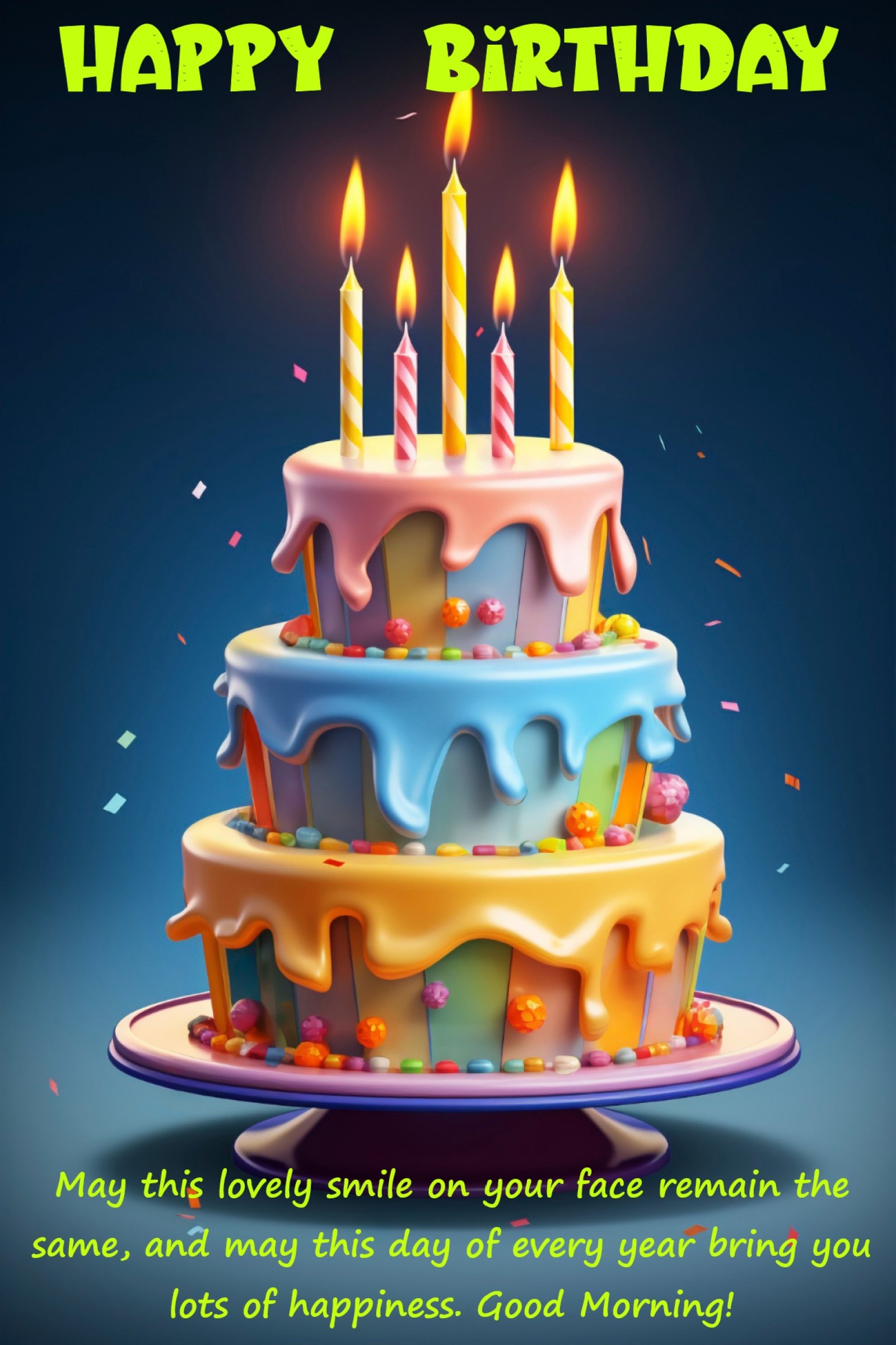 “Good Morning! May this lovely smile on your face remain the same, and may this day of every year bring you lots of happiness.”