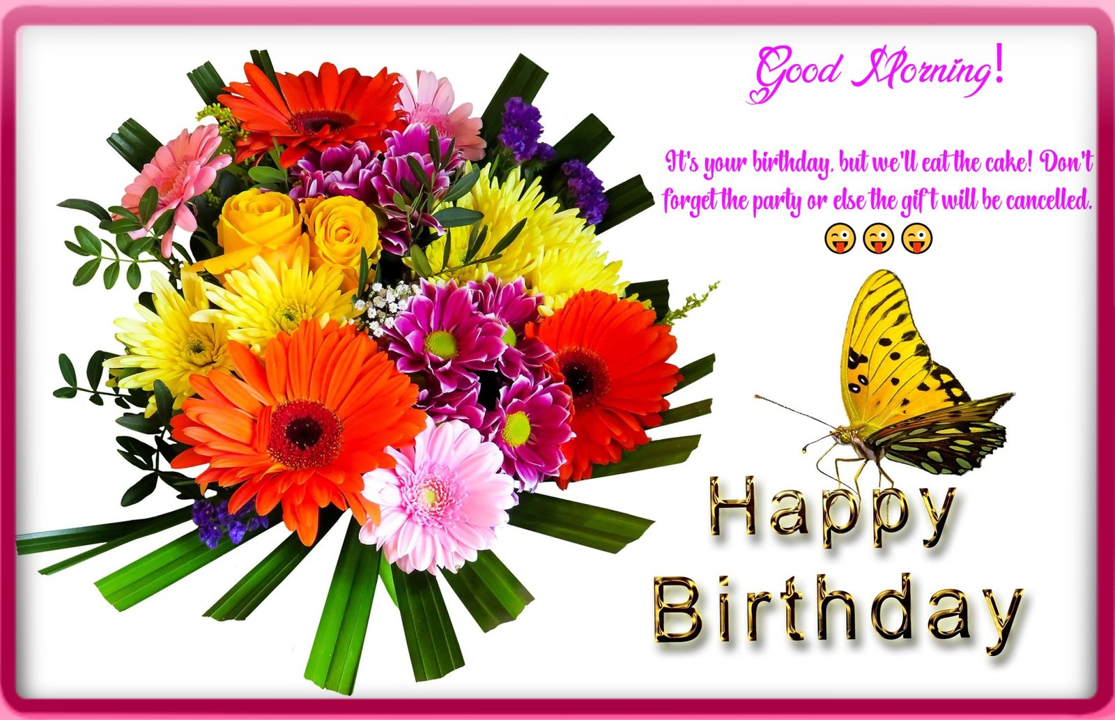 “Good Morning! It’s your birthday, but we’ll eat the cake! Don’t forget the party or else the gift will be cancelled ๐.”